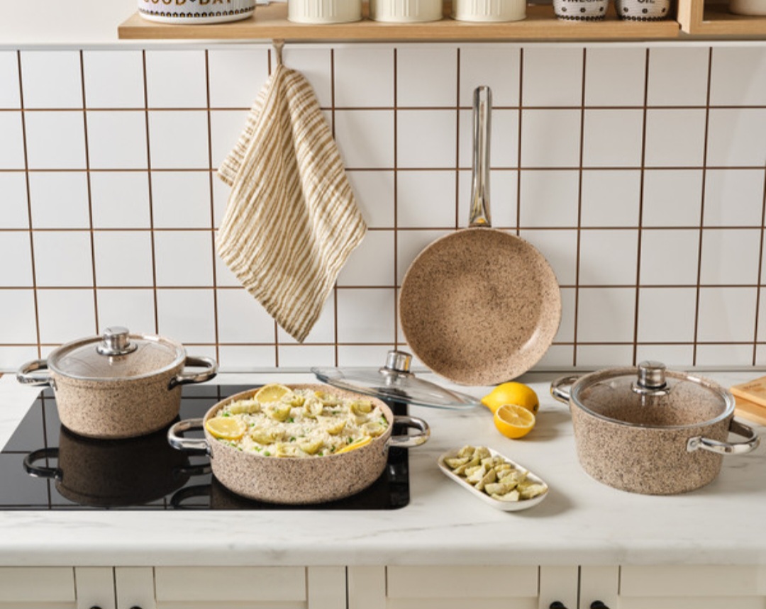 یک عدد قابلمه عمیق قطر 18 سانتی متر همراه درب, یک عدد قابلمه عمیق قطر 22 سانتی متر همراه درب, یک عدد نیم قابلمه قطر 26 سانتی متر همراه درب, یک عدد تابه قطر 26 سانتی متر, قابل شستشو در ماشین ظرفشویی, پوشش داخلی و بیرونی از گرانیت, قابل استفاده در اجاق گازی