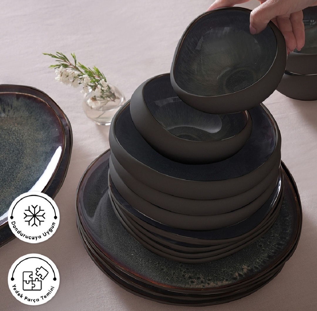 ۱۲ عدد بشقاب سرو، ۱۲ عدد بشقاب غذاخوری، ۱۲ عدد بشقاب کیک، ۱۲ عدد کاسه، ۳ عدد بشقاب قایقی، ۱ عدد کاسه بزرگ، ۱ عدد نمکدان، ۱ عدد فلفلدان، ۱ عدد جای خلال دندان. مناسب برای شستشو در ماشین ظرفشویی.